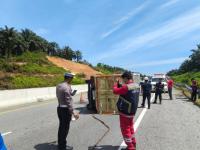 Ditabrak Pajero Sport Truk Box Terguling di Tol Pekanbaru-Dumai