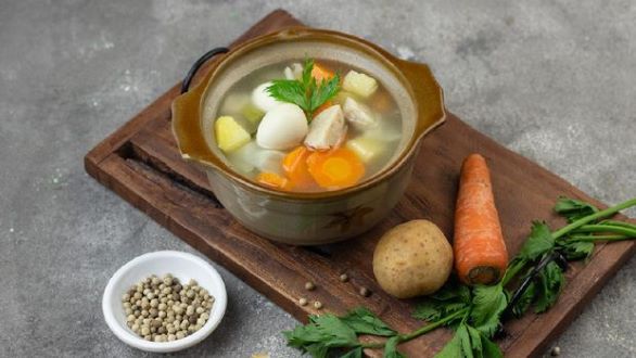 Menu sayur sop ini bisa diisi dengan telur puyuh dan beragam jenis sayuran seperti wortel, kentang, tomat, dan seledri.