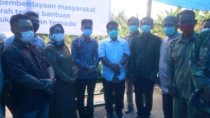 ROHIL - Bupati Rokan Hilir (Rohil) terpilih Afrizal Sintong turut hadir menyaksikan penyerahan bantuan alat penggiling kompos untuk masyarakat tani di KM 12 Balam, Dusun Sepakat Desa Bangko Jaya, Kecamatan Bangko Pusako.