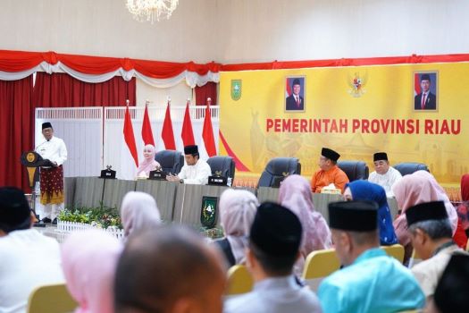 BNEWS - Penjabat (Pj) Gubernur Riau beserta Forum Koordinasi Pimpinan Daerah (Forkopimda) dan seluruh Organisasi Perangkat Daerah (OPD) Provinsi Riau, menerima silaturahmi Anggota Dewan Perwakilan Daerah Republik Indonesia (DPD) daerah pemilihan Riau, di Gedung Daerah Balai Serindit, Jumat (1/11/2024).