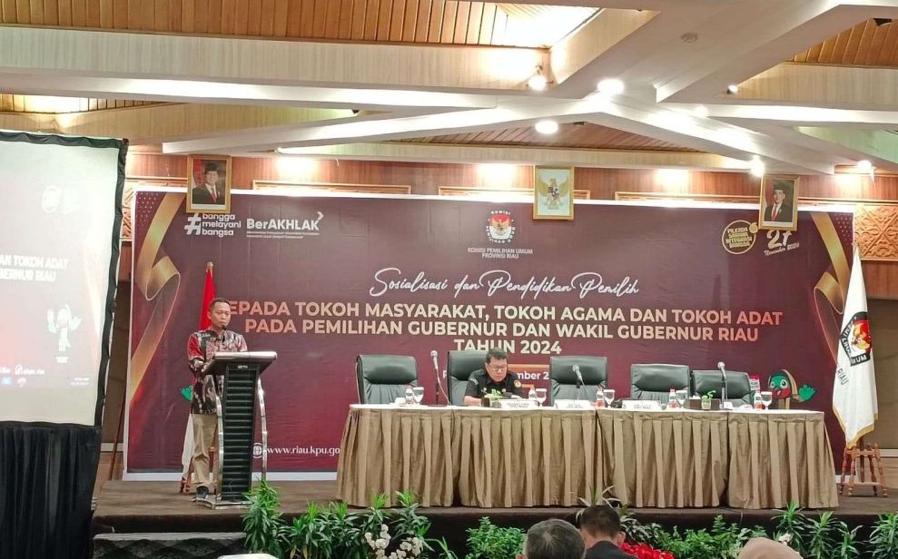 BNEWS - Komisi Pemilihan Umum (KPU) Provinsi Riau menyelenggarakan sosialisasi dan pendidikan pemilih yang ditujukan kepada para tokoh masyarakat, tokoh agama, dan tokoh adat pada Rabu (6/11/2024), di kota Pekanbaru.