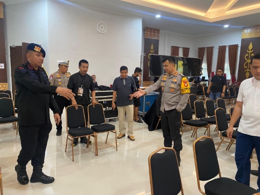 Tidak hanya itu, Kapolres dan rombongan juga memeriksa kesiapan posisi kursi untuk para paslon, tamu undangan, serta dukungan massa yang diizinkan hadir di acara tersebut.