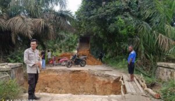 Menurut Kapolsek Singingi Hilir, Iptu Alferdo Krisnata Kaban, akses jalan warga dua desa tersebut terputus karena jalan di pangkal Jembatan Sungai Bawang di Desa Petai amblas.
