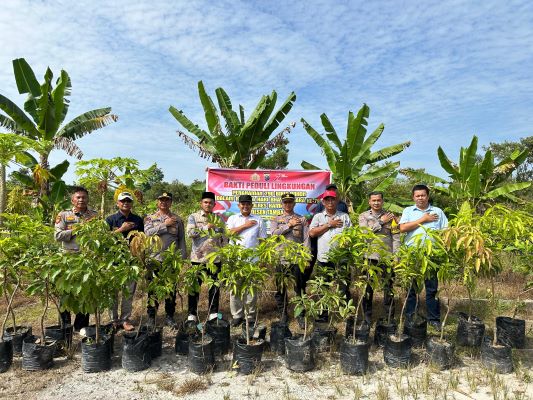 Kegiatan penanaman bibit pohon ini merupakan bagian dari rangkaian peringatan Hari Bhayangkara ke-79. Kapolsek juga menyerahkan bantuan berupa bibit pohon dan peletikan.**/ald