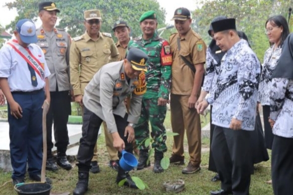 Penanaman pohon yang dilakukan bersama para siswa diharapkan menjadi simbol komitmen bersama antara pemerintah daerah, kepolisian, dan masyarakat dalam menjaga keseimbangan ekosistem dan kelangsungan hidup lingkungan.**/bbg
