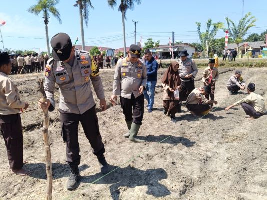 Berkabarnews.com, Kampar - Sebagai wujud dukungan terhadap program pemerintah dalam rangka ketahanan pangan, Kapolres Kampar, AKBP Boby Putra Ramadhan Sebayang, bersama Wakapolres Kampar, Kompol Andi Cakra Putra dan jajaran melakukan penanaman jagung pipil secara serentak.