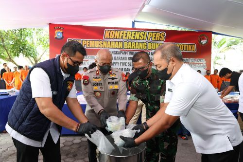 Saat pemusnahan Narkoba ini Wakapolda Riau Brigjen Pol Andrianto Jossy Kusumo menegaskan, pihaknya tidak akan memberi ruang sedikit pun bagi sindikat narkoba untuk beroperasi di Bumi Lancang Kuning.