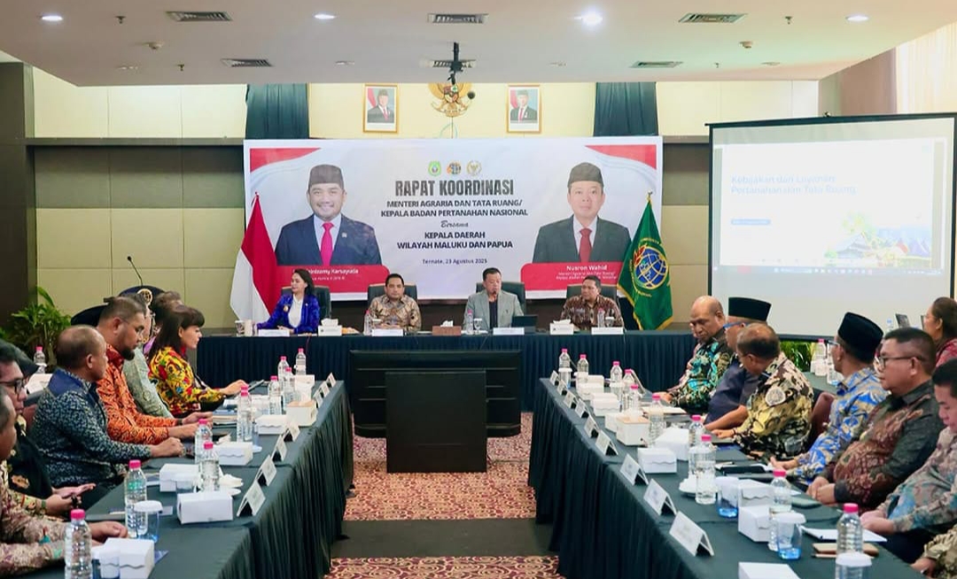 “Kolaborasi dan koordinasi mutlak sifatnya, tidak boleh tidak. Kami tidak bisa menerbitkan sertipikat tanah kalau tidak ada dukungan dokumen dari Pemda, dukungan dari kepala desa. Karena, setiap akan menerbitkan sertipikat, harus tahu tentang riwayat tanah, dan yang tahu riwayat tanah itu adalah desa,” terang Menteri Nusron dalam Rapat Koordinasi dengan Pemda Maluku Utara, di Kota Ternate, Sabtu (23/08/2025).