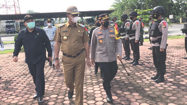 Apel gelar pasukan dipimpin langsung Bupati Rokan Hilir Suyatno didampingi Kapolres Rokan Hilir, AKBP Nurhadi Ismanto serta Pasi OPS Dandim 0321/Rohil Kapten Inf. M Manurung.