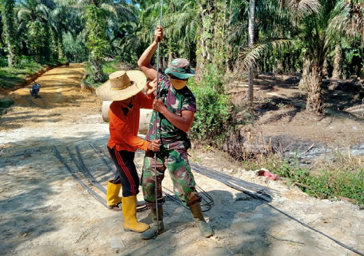 TMMD Hari Pertama di Rohil, TNI dan Warga Rakit Besi untuk Box Culvert