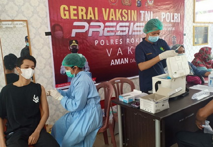 "Vaksinasi dilaksanakan di dua tempat berbeda, di gerai vaksin Polres Rokan Hilir dan kantor camat Bagan Sinembah Raya," kata Kapolres.