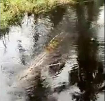 BNEWS - Beredar rekaman video penampakan seekor buaya muara sedang berenang di Sungai Batang Tuaka, Desa Sialang, Kabupaten Indragiri Hilir dan dekat dengan pemukiman. Tentu saja hal ini membuat warga panik. Video ini beredar Selasa (16/11/2021).