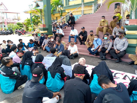 BNEWS - Himpunan Pelajar Mahasiswa Rupat (HPMR) Kabupaten Bengkalis menggelar aksi damai ke kantor bupati untuk meminta keadilan, terkait pengelolaan dan penambangan pasir di Rupat. Aksi ini melanjutkan aksi sebelumnya di kantor DPRD Bengkalis, Senin (22/11/2021).