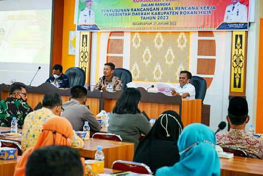 BNEWS - Pemerintah daerah Rokan Hilir (Rohil) menggelar acara konsultasi publik penyusunan rancangan awal Rencana Kerja Pemerintah Daerah (RKPD) Kabupaten Rohil tahun 2023, yang dilaksanakan di ruangan rapat Kantor Bappeda Rohil, Kamis (27/1/2022).