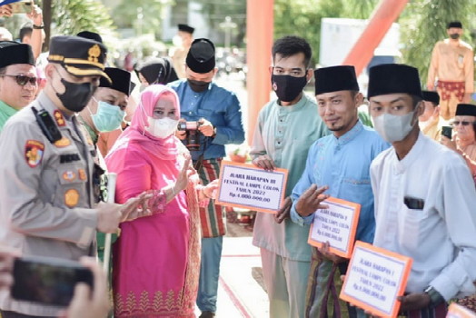 BNEWS - Pemerintah Kabupaten Bengkalis melaksanakan Halal Bihalal Idul Fitri 1443 H dan menyerahkan hadiah pemenang lomba Festival Lampu Colok tahun 2022 Kabupaten Bengkalis, di Lapangan Tugu Bengkalis, Selasa (17/5/2022).