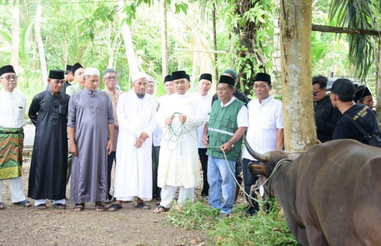 Ditambah Wabup Bagus Santoso, lembu kurban yang diserahkan ini, merupakan lembu dari pengusaha farm yang bernama Hasan, yang merupakan putra Bengkalis.
