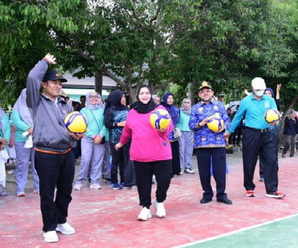 BNEWS - Bupati Bengkalis Kasmarni membuka turnamen bola volly yang diselenggarakan Tim Penggerak Pemberdayaan Kesejahteraan Keluarga (TP-PKK) Kabupaten Bengkalis, sempena hari jadi ke-510 Bengkalis serta Hari Ulang Tahun (HUT) ke-77 Kemerdekaan Indonesia.