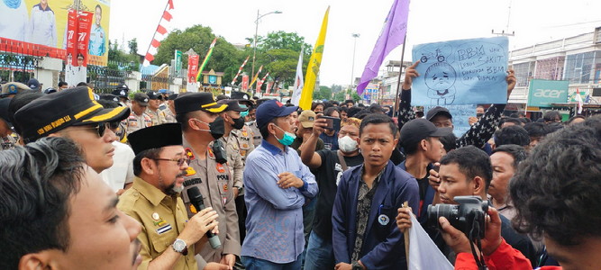 Sedangkan Sekda Bengkalis H Bustami HY menerima aksi unjuk rasa tolak kenaikan harga BBM subsidi dari para Mahasiswa Politeknik Negeri, memberikan apresiasi atas kepedulian mahasiswa tersebut.