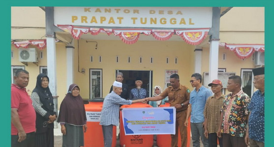 BNEWS - Pemerintah Desa (Pemdes) Prapat Tunggal Kecamatan Bengkalis, Kabupaten Bengkalis Riau, membagikan 147 wadah tempat penampungan air hujan (PAH) kepada warganya, Selasa (11/10/2022).