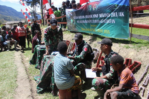 Mengantisipasi hal tersebut, personel TNI Pos Tima Satgas Yonif Mekanis 203/AK, melakukan pemeriksaan kesehatan gratis bagi masyarakat sekitar pos di Desa Tima, Distrik Balingga, Rabu (7/12/2022).