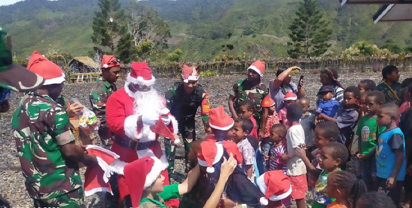 Dandim Puncak Jaya Letkol Inf Denny Salurerung, membawa sosok Santa Claus yaitu Pratu Frans Yin untuk menghibur anak-anak serta membawa kebahagiaan tersendiri bagi seluruh anak-anak Kampung Wuyuneri.