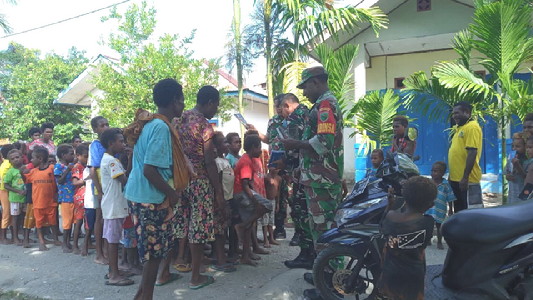 BNEWS - Babinsa Koramil 1710-07/Mapurujaya, Papua, dipimpin Serda Nampe, memberikan bantuan alat tulis kepada anak-anak sekolah di wilayah binaan Kp. Kaugapu Distrik Mimika Timur, Kab. Mimika, Kamis (5/01/2023).