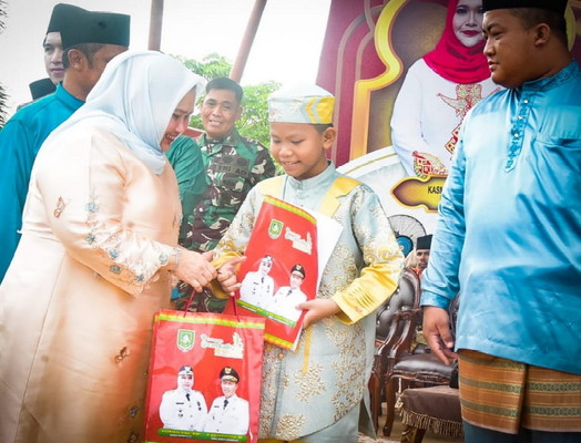 Selain menerima penghargaan dari Bupati Kasmarni, pada acara silaturahmi itu Akil juga didaulat sebagai qori jemputan.