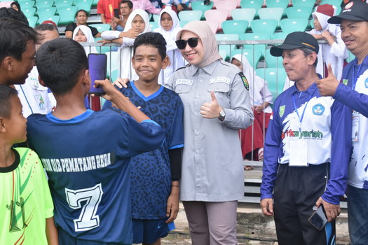 BNEWS - Bupati Indragiri Hulu (Inhu) Rezita Meylani Yopi, membuka turnamen sepak bola mini tingkat SD/MI sederajat se kecamatan Rengat Barat di stadion Batu Canai Pematang Reba, Senin (08/05/2023).