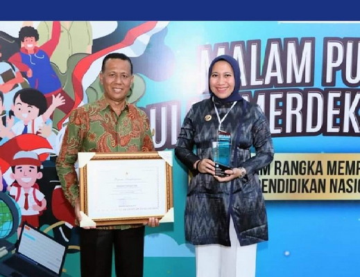 Anugrah ini diserahkan langsung oleh Mendikbudristek Nadiem Makarim kepada Bupati Inhu Rezita Meylani Yopi, di Gedung Seni Trimurti, Komplek Candi Prambanan, Sleman, Yogyakarta, Senin (29/05/2023), pada malam puncak rangkaian Peringatan Hari Pendidikan Nasional.